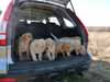 Die Welpen machen nun schon Ausflüge in den Garten und erste Ausfahrten ins Revier. |